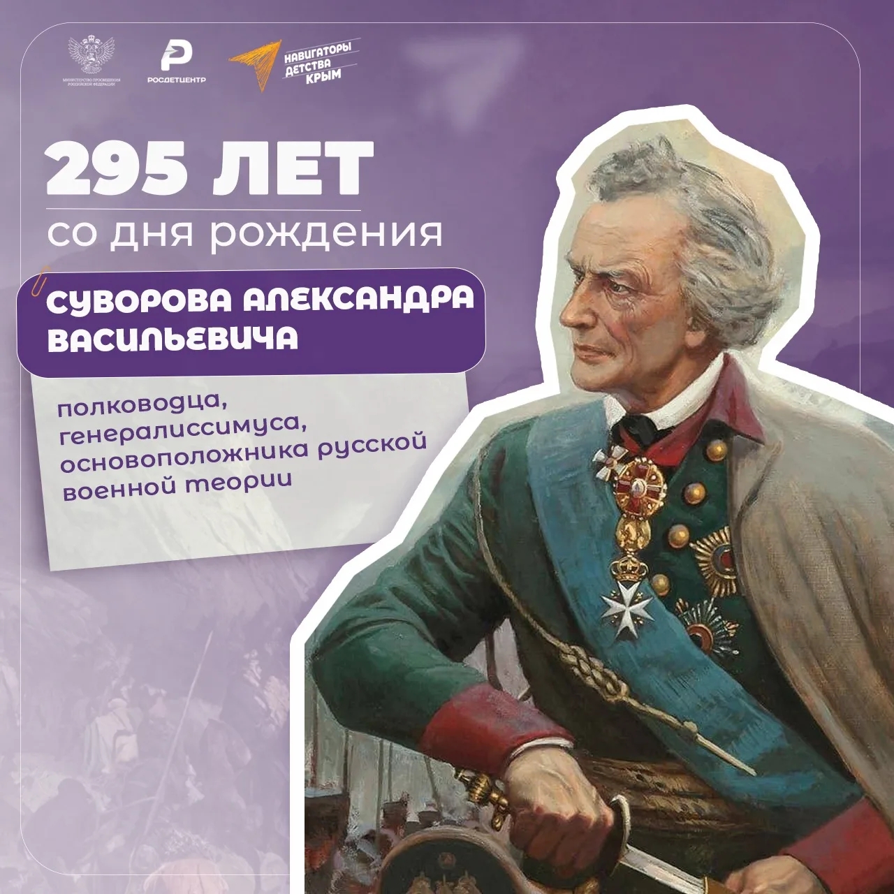 24 ноября исполняется 295 лет со дня рождения легендарного Александра Васильевича Суворова. В этот знаменательный день библиотекарь Алла Дмитриевна Горюнова провела для ребят увлекательный патриотический час "Великий полководец Суворов". Каждый из ребят смог узнать много нового о выдающемся полководце, его жизни и подвигах.